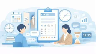 英検の二次試験(面接)は、一次試験と比べて情報がまとまっておらず、「何時から始まるのか」「どのくらい会場にいるのか」が分かりにくい試験です。この記事では、公式情報をもとに、面接そのものにかかる時間・会場での待ち時間・午前午後の時間帯の傾向・...