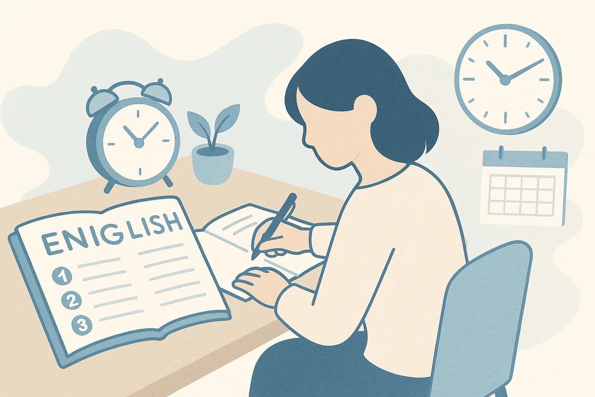 語彙→長文→ライティング→リスニング→スピーキングの順で土台を固め、「試験形式に慣れる」ことまでセットで計画すると、最短ルートに近づけます。