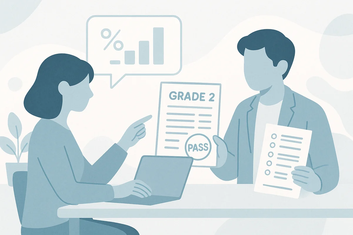 まずは一番知りたい「公式な合格点」と「合格率」をはっきりさせます。ここがぼやけていると、勉強の目標もあいまいになってしまいます。
