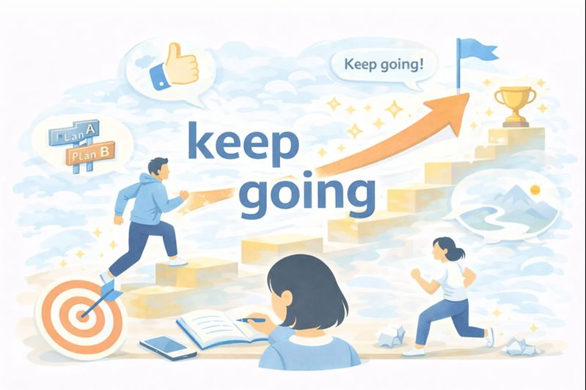 この記事では、「keep going」のコアイメージから、会話・励まし・道案内・ビジネス・生活の話まで、よく使う場面別にくわしく解説します。