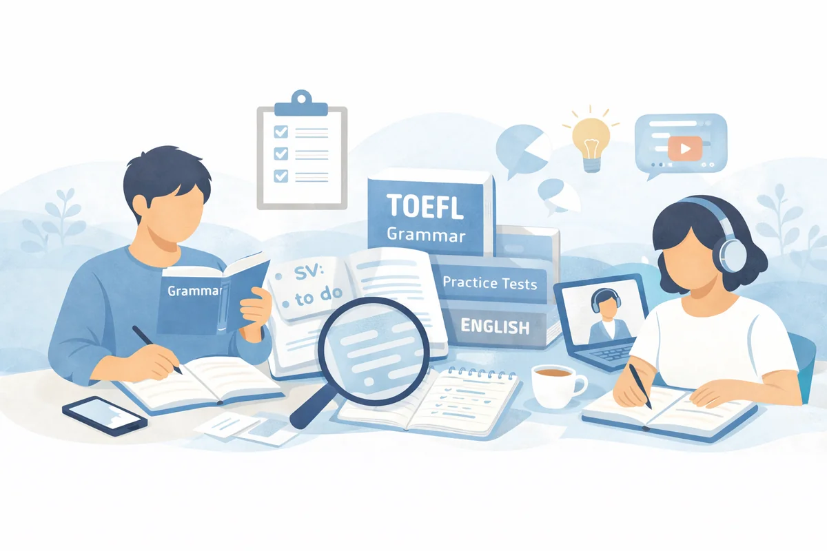 この記事では、TOEFL iBT / ITP それぞれの試験構成から文法の役割を整理し、レベル別におすすめしやすい文法参考書の種類と使い方をまとめます。